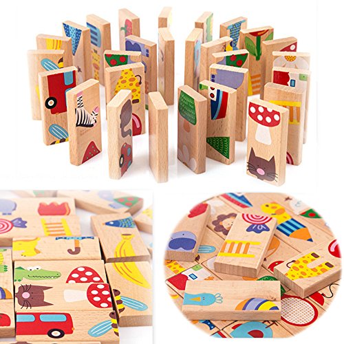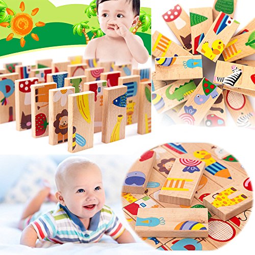- パッケージ内容28個/セットDomino blcoksキッズ赤ちゃん動物のドミノパズルのおもちゃ。。。。28個/セットDominoパズルのおもちゃ木製動物パズル