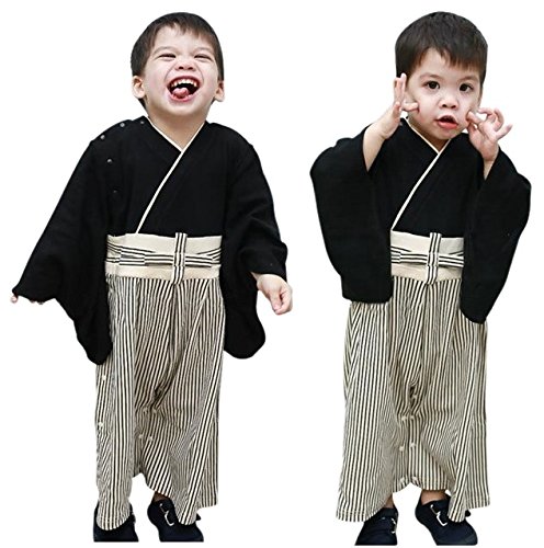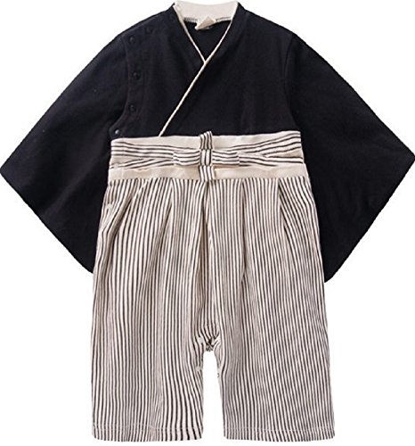 Eiza 男の子 和装 袴 カバーオール ベビー 服 着物 正装 お宮参り 七五三 節句 写真 撮影 ロンパース e447 (80cm)