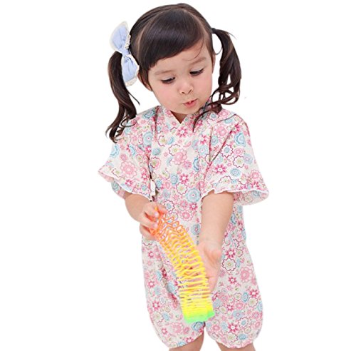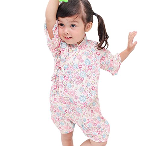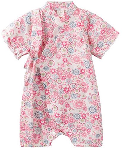 Eiza ベビー 服 ショートオール 浴衣 甚平 タイプ カバーオール 祭り 花火 お祝い プレゼント e911 (90cm, ピンク)