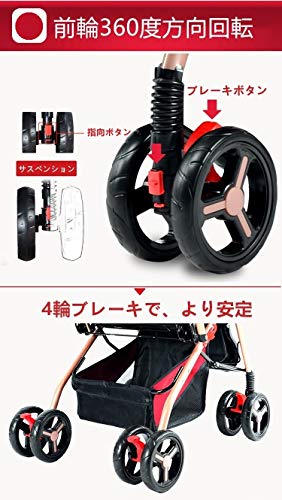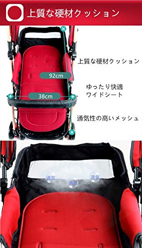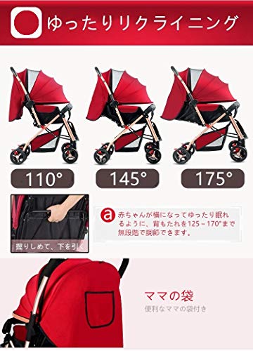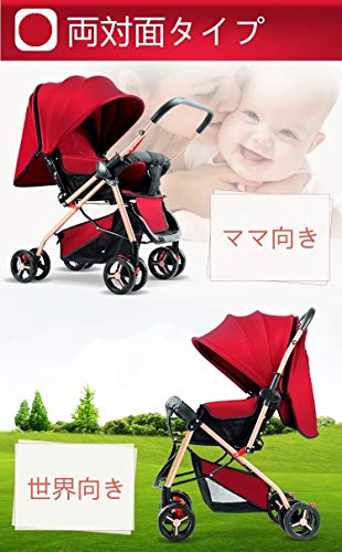 ベビーカー 軽量 ハイシート A形 両対面ベビーカー 折りたたみ フルカバー日よけ UVカット 通気メッシュ窓付き 快適乗り心地 1ヶ月~36ヶ月頃対象 HonourBaby レッド ※3年保証登録対応品 ★購入特典カップホルダー付