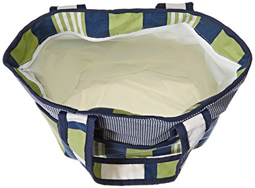 The strong, durable and stylish diaper bags made from designer fabrics in the USA;All bags are reinforced and lined with denier nylon which won't crack or yellow over time;Tote style has snaps on the handle to easily secure your bag to a stroller;Lined pockets are on the outside with one side having a full width zippered pocket and the other side holds three open bottle pockets; A nylon changing pad is included; Machine washable