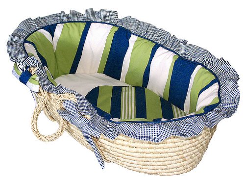 Quality designer fabrics with doubled ruffles and ties plus detail piping;Unique, duvet style bumpers open to remove bumper padding for laundering;The basket includes bumpers, sheet and a full size flannel lined receiving blanket;Machine washable