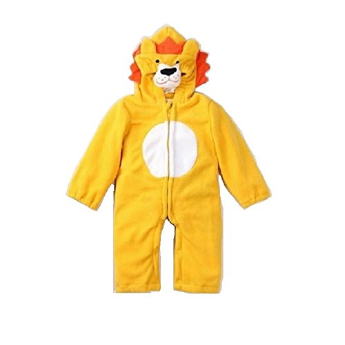 hooyiライオンの赤ちゃんの男の子の長袖ロンパースウォーマーフードコートの生まれたてのフリースのジャンプスーツ (黄, 90)