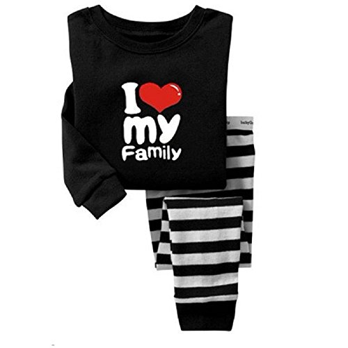 私は私の家族が大好き Hooyi 赤ちゃん男の子パジャマ綿の子供ストライプ パジャマ セット (120(6歳))
