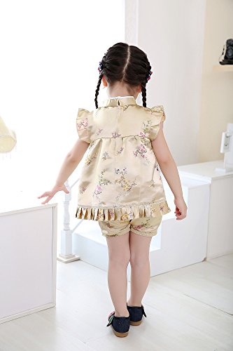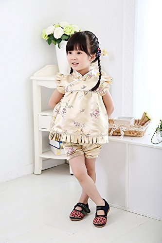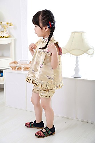Hooyi 梅の竹赤ちゃんの女の子のドレス半袖上着とズボンはチャイナドレスセット春節の子供ドレスのチャイナドレス (金色, XL)
