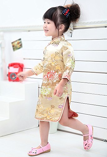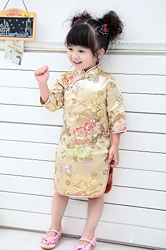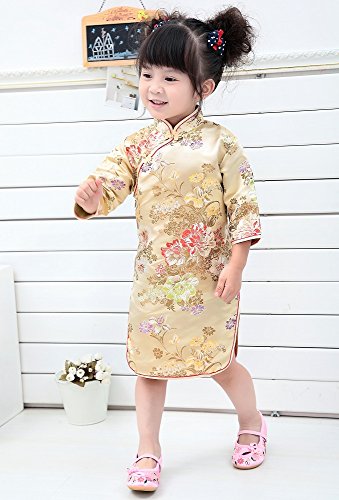 Hooyi ぼたん赤ちゃんの女の子の七分の袖ドレスを中国旗袍包春祭りの子供ドレスのチャイナドレス (金色, 16)