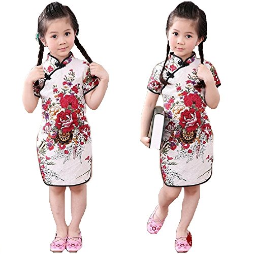 Hooyi 女性の赤ちゃんはチャイナドレスの子供の半袖のスカートの中国の伝統的な服装 (白い, 4)