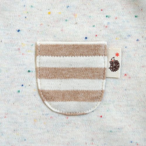 ◆やさしい肌触りと色合い◆赤ちゃんのお肌にも環境にも優しい、オーガニックコットンを使ったアイテムが人気の「Hoppetta Plus(ホッペタプラス)」。こちらは2WAYで使えるロンパースです。 前開きで寝かせたまま着せられるので、生まれたてのベビーにも着せやすいところが嬉しいポイント。足元はドレスにもなり、ボタンの留め方を変えれば、ショートオール仕様にすることもできます。 袖とポケットとおしりの部分に使われているボーダー柄もアクセントに。オーガニックコットンを使いながらも、かわいらしくやさしい色合いに染色されています。出産お祝いギフトにもおすすめの一着です。