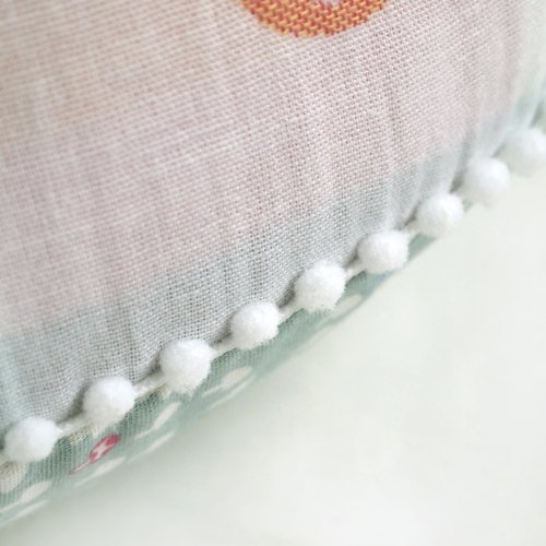 片面は大きなきのこ柄、もう片面は細かいきのこ柄のリバーシブル。切り替え部分にあしらったポンポンがキュートで楽しい雰囲気に。カバーは取り外して洗濯可能(ヌードクッションは手洗い可)。