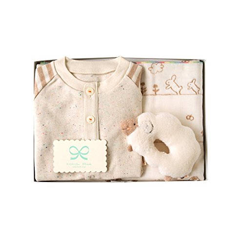 ・がらがらひつじ:側地 コットン100%(オーガニックコットン)、中わた ポリエステル100% - [セット内容・付属品] ・おくるみ、ロンパース キナリ 約50−70cm、がらがらひつじ