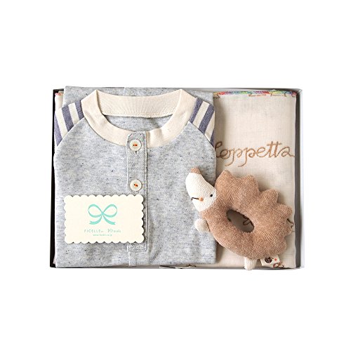 ホッペッタ Hoppetta ギフトセット おくるみ+ロンパース パープル 50-70cm+がらがらはりねずみ 8805