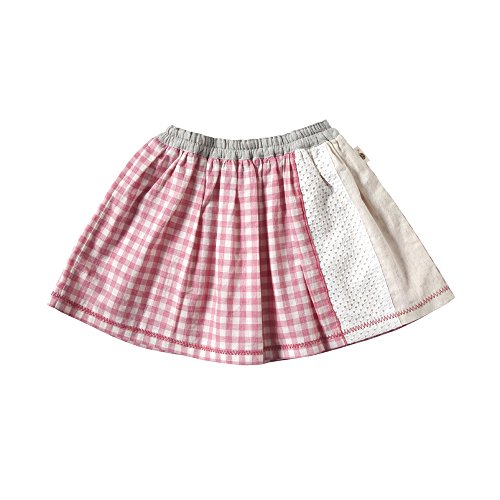 • ギンガムチェックと無地の切り替えがポイントのフレアースカート。