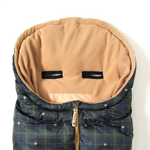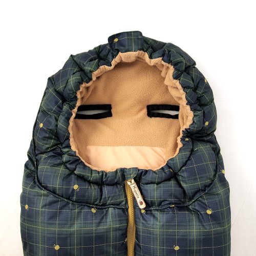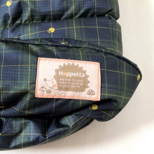 hoppettaフットマフは、ナチュラルなチェック柄のふわふわフットマフ。シックな色合いなので、男の子にも女の子にも使用していただけます。中綿には丸洗いできるポリエステル素材の「つぶわた」を使用し、もこもこのあたたかさと、やさしいデザインでベビーを包み込みます。ワンサイズで新生児から4才頃までご使用いただけます。