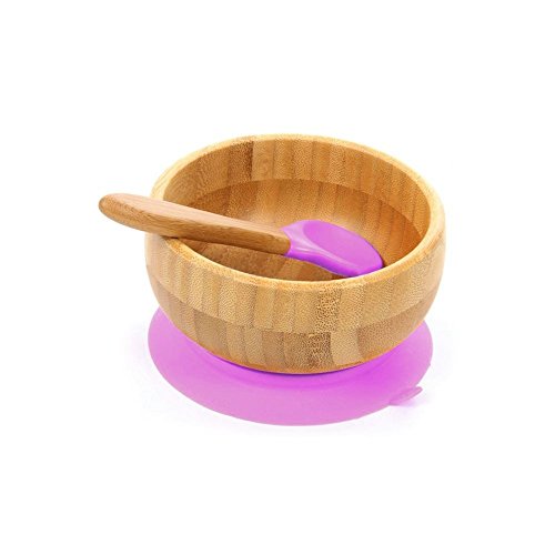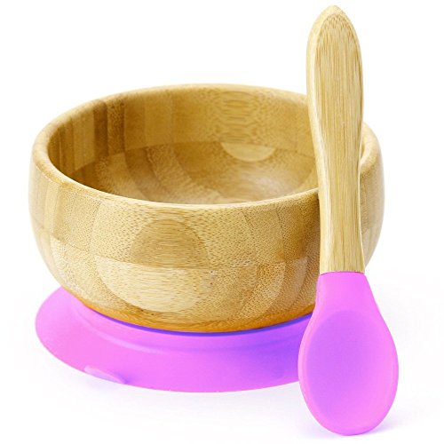 Brilidea 吸盤付き 竹ボウル お茶碗 ひっくり返し防止 スプーン付き (ピンク) bamboo bowl with silicone bottom set (plus spoon) (ピンク)