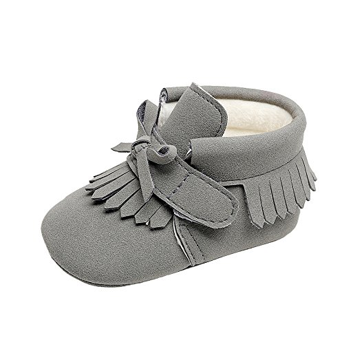 子供シューズ Hosam キーズシューズ ブーツ 冬 フリンジ ベビー可愛い靴 ファーストシューズ 女の子 男の子 可愛い ふわふわ お洒落 (11cm, グレー)