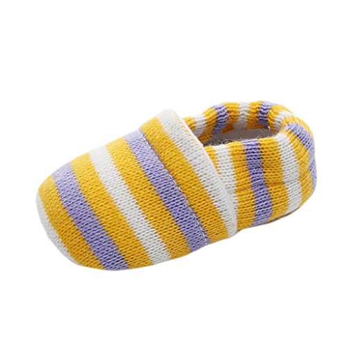 子供シューズ Hosam キーズシューズ ニットシューズ 編み靴 縞柄 ベビー可愛い靴 ファーストシューズ 女の子 男の子 可愛い ふわふわ お洒落 (11cm, イエロー)