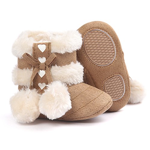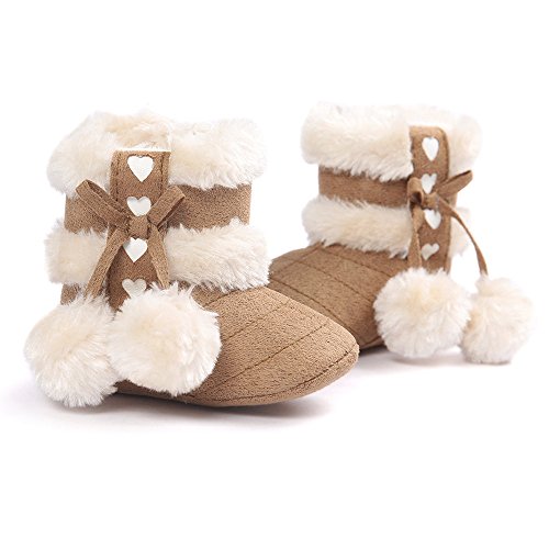 子供シューズ Hosam ベビーシューズ ファーストシューズ 女の子 ブーツ 可愛い モコモコ 暖かい 保温 防寒 冬 子供 お祝い 誕生日などのプレゼント (12cm, ベージュ)