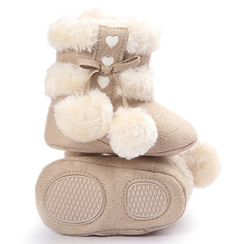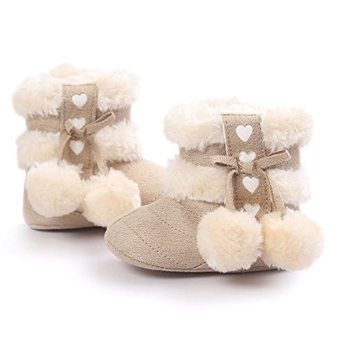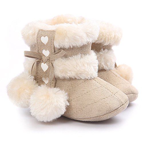 子供シューズ Hosam ベビーシューズ ファーストシューズ 女の子 ブーツ ベージュ レッド ピンク 可愛い モコモコ 暖かい 保温 防寒 冬 子供 お祝い 誕生日などのプレゼント (11cm, ベージュ)