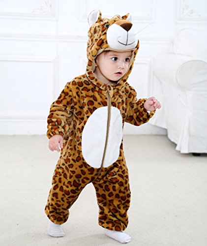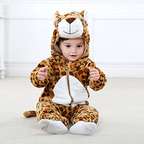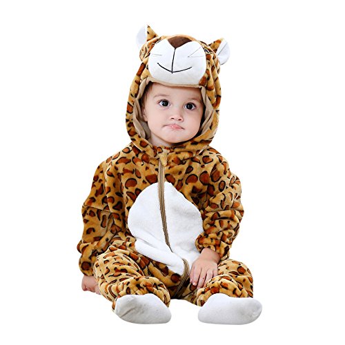 ベビーロンパースHosam 子供服 赤ちゃん 男の子 女の子 動物 コスチューム 可愛い 柔らかい 秋冬衣装 室内 子供の誕生日プレゼント 出産お祝い (90, ヒョウ)