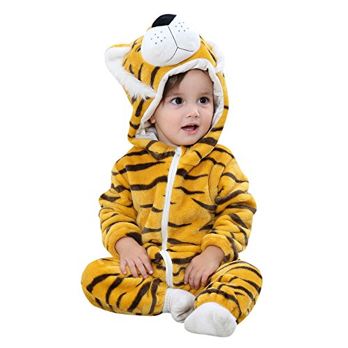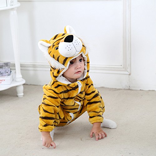 ベビーロンパースHosam 子供服 赤ちゃん 男の子 女の子 動物 コスチューム 可愛い 柔らかい 秋冬衣装 室内 子供の誕生日プレゼント 出産お祝い (100, トラ)