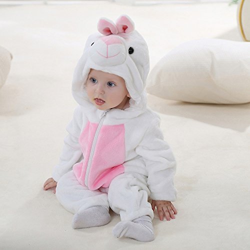 ベビーロンパースHosam 子供服 赤ちゃん 男の子 女の子 動物 コスチューム 可愛い 柔らかい 秋冬衣装 室内 子供の誕生日プレゼント 出産お祝い (100, 白ウサギ)