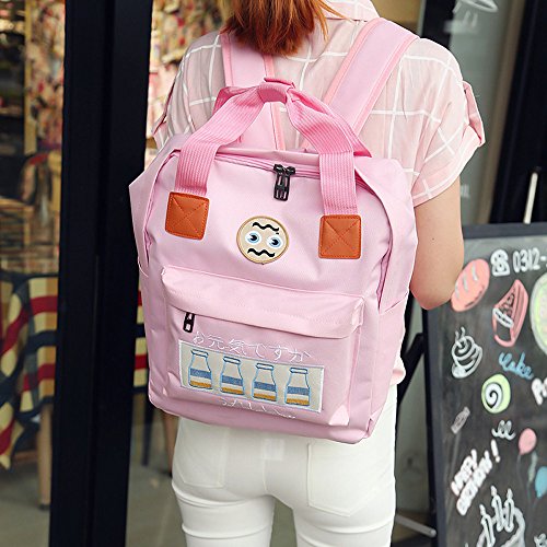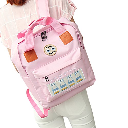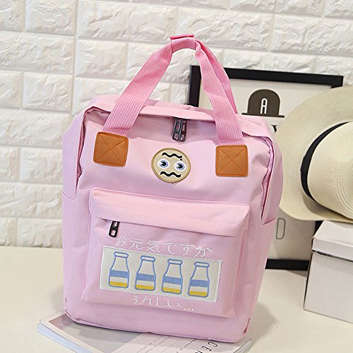 リュックサック Hosam バックパック 可愛い文字 表情 男女兼用 中学生 高校生 通学 合宿 キャンプ お出かけ 花火大会 などの時適用 (ピンク)