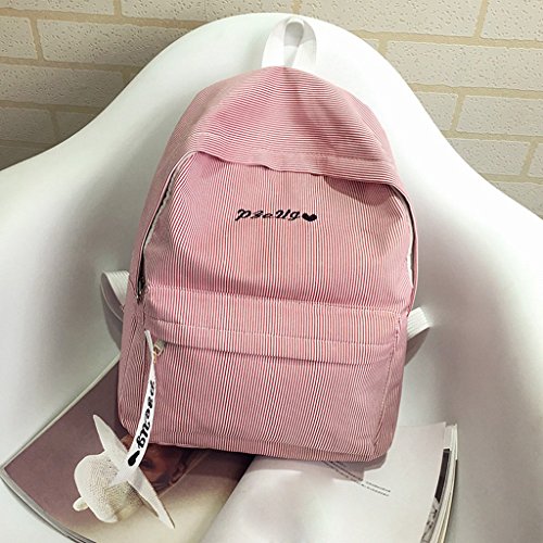 リュックサック Hosam バックパック 女の子 レディース かばん キャンバス素材 綺麗 可愛い おしゃれ ファッション 高校生 大学生 オフィスレディ お出かけ 通学 通勤 旅行などに 小物 携帯 タブレット ヘッドホン 収納  (ピンク)
