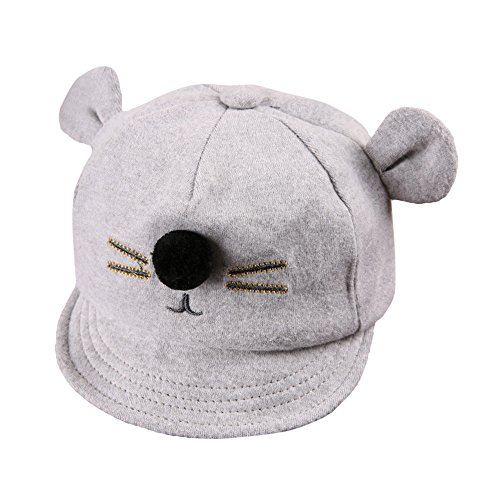 ベビー用ハット Hosam 子ども 野球帽子 鳥打ち帽子 ネズミ 可愛い飾り 春 秋 冬 防寒 お出かけ用 赤ちゃん ニット帽 誕生日 出産祝い 記念写真の衣装にベビー 防寒帽子 (シルバー)