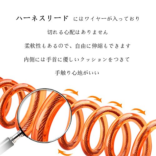 - 素材:ハーネスリードにはワイヤーが入っており、切れる心配はありません。柔軟性もあるので、自由に伸縮もできます。内側には手首に優しいクッションをつきて、手触り心地がいい。