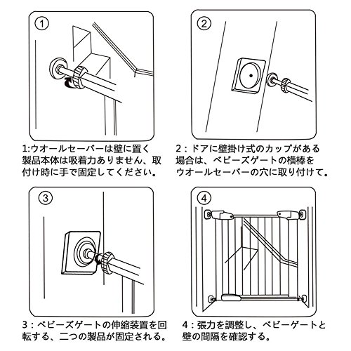 - ウォールセーバー4個セットで、大切な壁を傷つけずにペットゲート、ベビーズゲートなどをご使用できます。