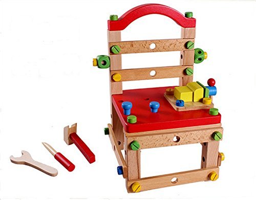 HostarR 木製ボルトとドライバーで椅子を作ろう! 子供 木のおもちゃ 組み立て工具 大工さんセット 幼児 キッズ 1歳から ねじ遊び 知育おもちゃ by Hostar [並行輸入品]