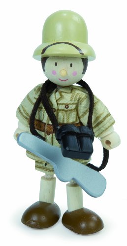 Jack the Hunter uses his tranquilizer gun to help the safari doctor;He is wearing a tan safari uniform;Includes wooden accessories;He is about 4 tall;Safari collection