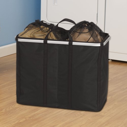 - Household Essentials Collapsible Krush Double Sorter Laundry Hamper with Mesh Top and Aluminum Rim, Black