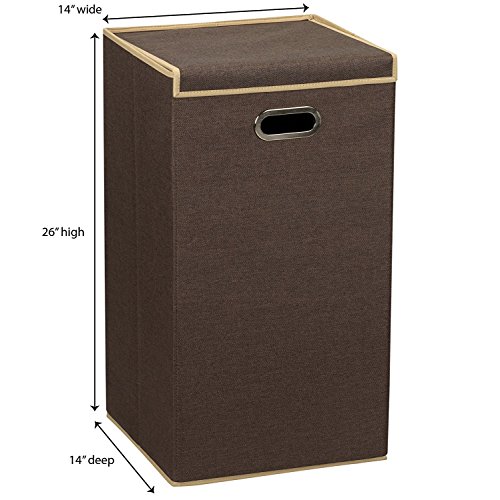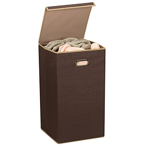 Size:Single ツ?|ツ? Color:Brown Lidded Laundry Hamper keeps your laundry under wraps. This sturdy, collapsible (read space-saving) hamper is lined with moisture resistant polyester so your laundry rests comfortably in its interior while awaiting laundry day. With an attached lid with magnetic closures keeping your things carefully out of sight, your have the best of containment and discretion. Simple lines, a compact design, and a clean look accommodate nearly any dテゥcor. Sturdy, inset grommet handles provide an extra measure of strength and durability to your hamper as it moves from place to place. Make the most of your space・E?・Ewhether at home or away・E?・Eand give your laundry its own place.