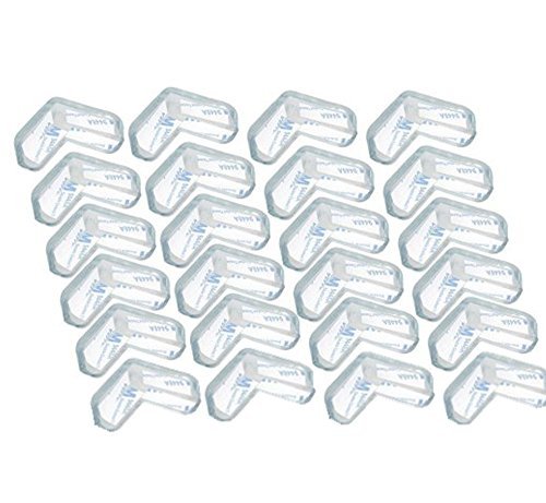 Made of PVC material,Transparent color,Quantity:24pcs/Pack;L-shaped corner cushions??nside measurement:35x35x10x6mm,Outside Dimensions:40x40x15mm;L-shape makes it more flexible for different corners,With the included double-sided adhesive tape, each one can be easily and firmly attached to the sharp surface of furniture, corners and home appliances with right angle.;Suitable for corner of tables, chairs, chests, cabinets, shelves, stairs, hearths and other home furniture;Can be used to prevent the baby from sharp desk corner bumps, and protect your baby from accidentally hit and severely injured when they are learning to walk.