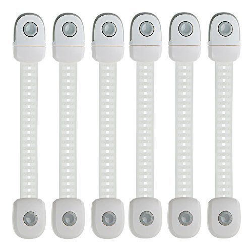 6パック子安全ロック、huanlemai調節可能キャビネットロック&ストラップ粘着剤ラッチ赤ちゃんのProofキャビネット、引き出し、アプライアンス、トイレシート グレー HLM-NJM-0000004
