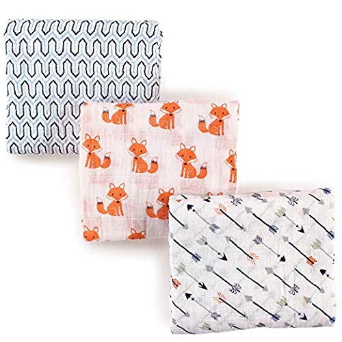 Hudson Baby 100% モスリンコットン ふんわり柔らかガーゼ おくるみ コットン ブランケット ブルー 男の子 動物 きつね [並行輸入品]