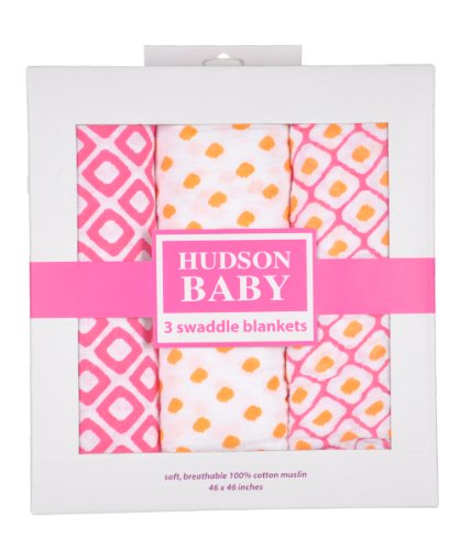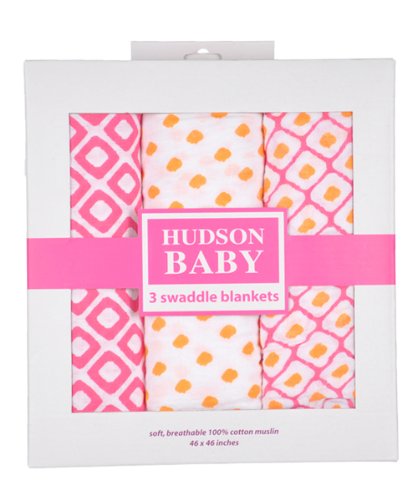 - Hudson Baby Colorful Dreamer Swaddle Blanket - pink/orange, one size