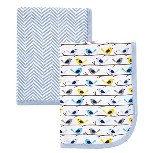 - Hudson Baby 2 Piece Interlock Cotton Swaddle Blanket, Blue Birds