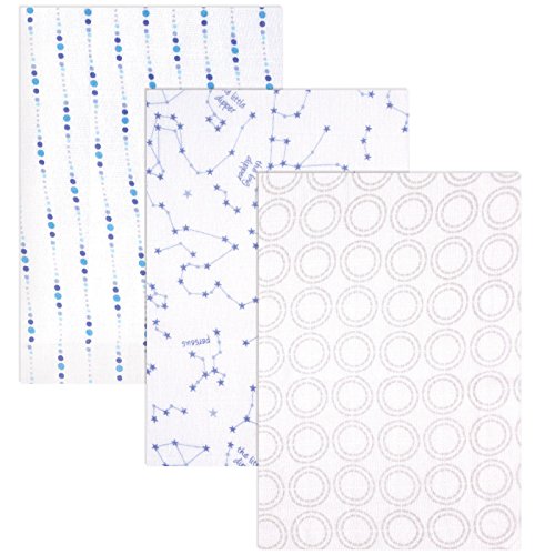 - Hudson Baby 3 Piece Muslin Swaddle Blanket, Blue Constellations