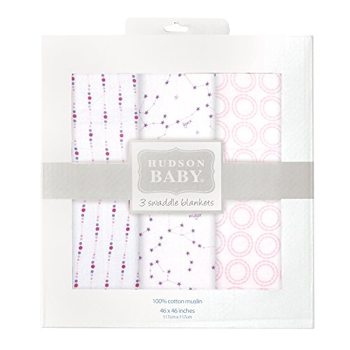 Hudson Baby 3 Piece Muslin Swaddle Blanket, Pink Constellations by Hudson Baby [並行輸入品]