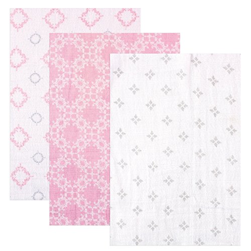 - Hudson Baby 3 Piece Muslin Swaddle Blankets, Pink Damask, 46 x 46