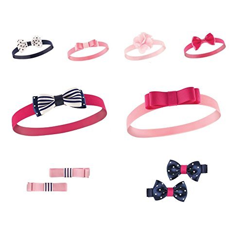 Hudson Baby Girls 10パックヘッドバンドとクリップヘアセットネイビー&ピンク