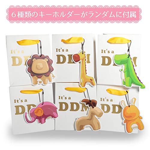 オリジナルの紙袋やボックスのほか、ライオン・キリン・恐竜・ぞう・トナカイ・うさぎの6種類の中から1つ、ランダムに選んだ可愛らしいキーホルダーを紙袋にお付けします。