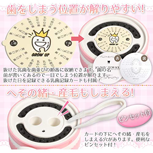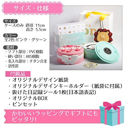 【名入れ対応版あり】☆出産祝い☆ 乳歯 ケース 乳歯入れ へその緒 うぶ毛も収納可能 トゥースボックス 防湿 抗菌 高級プラスチック素材使用 活性炭入 防散落 乳歯記録カード付き 長期保管に最適 男の子 女の子(ピンク)