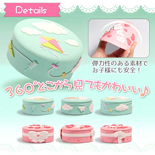 ピンク色はハートとリボン、ミントブルーは雲と凧のモチーフがメルヘンな印象を与えてくれます。