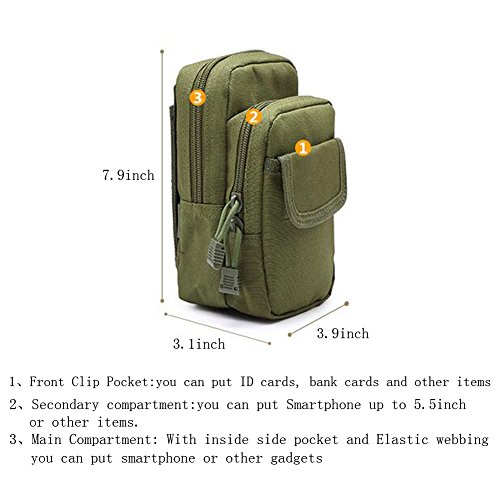 Huijukon Multi-Purpose Tactical MOLLE EDC Pouch Smartphone Pouch Utility Gadget Pouch Outdoor Sports Waist Pouch (Army Green)