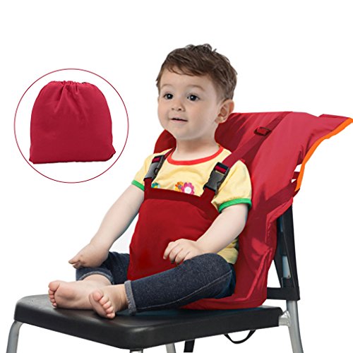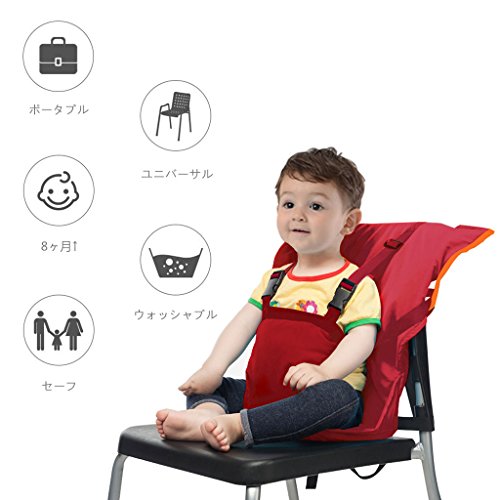 チェアベルトポータブル 収納ポケット付きチェアベルト 携帯型食事 ベビーチェア小物 幼児旅行の安全 レッド