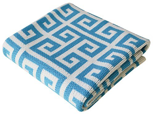 SUPERIOR QUALITY: Luxuriously soft and made from 100% Pure Cotton. This stroller blanket features a thick, yet breathable knitted cotton yarn. Ideal for use during all seasons, in the warmer months it can be decoratively draping over a crib or rocking chair; or used as a rug for a picnic; and in the cooler months, they're fabulous extra warm layers to snuggle up to, in the nursery or out-and-about in the stroller.;DESIGN: The Greek Key design is a classic, yet bold design. This vibrant color palette of Turquoise and Ivory is perfect for a little boy. The reverse side showcases a unique intricate weave pattern in the contrasting colors.;PERFECT SIZE FOR A BABY OR TODDLER: 30 x 40 inches / 76cm x 101cm. Weight: 1.3 lbs / 600g.;CLEANING IS A BREEZE - After an accidental spill, follow our simple care instructions to ensure your Humble Weave Throw Blanket is as good as new after every wash. Gentle Cold machine wash, Gentle Low tumble dry and remove promptly.