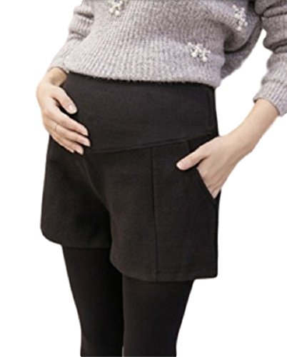 【cute×cute】 かわいい マタニティ 1分丈 ショート パンツ [ アジャスター 調整付き / 選べる3色 ] 大きいサイズも (XXL, ブラック)